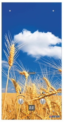 - передняя панель из стекла; ограничение температуры нагрева; материал теплообменника: медь; тип розжига: электроподжиг; автоматическое поддержание температуры воды на выходе; модуляция пламени; диаметр дымохода: 121 мм