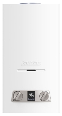 Надёжный теплообменник изготовлен из высококачественной меди. Гидравлическая модуляция обеспечивает стабильный нагрев воды вне зависимости от расхода. Камера сгорания оснащена водяным охлаждением. Водонагреватель с автоматическим розжигом обеспечивает 3 точки водоразбора, может работать на природном и сжиженном газе. Оснащён 2 ручками для регулировки расхода воды и газа.