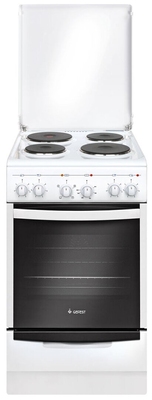 Плита оснащена 4 электрическими конфорками и электрической духовкой. Защитная крышка варочной поверхности предотвращает попадание брызг на стену. Полезный объём духовки составляет 52 литра. Режим гриля идеально подходит для быстрого приготовления сочного блюда с поджаристой корочкой. Двойное остекление дверцы духовки удерживает тепло внутри в течение всего процесса приготовления пищи. Внутреннее покрытие из эмали облегчает чистку стенок духовки.