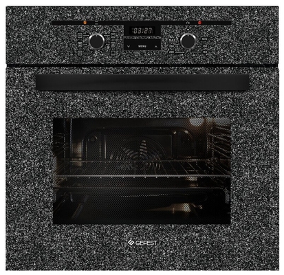 - турбо-гриль; телескопические полки; проволочные направляющие; черный с рисунком "камень"