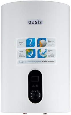 Oasis SN-30 - электрический накопительный водонагреватель отлично впишется в любой интерьер ванной комнаты. Оснащен резервуаром на 30 литров, внутренний бак которого выполнен из нержавеющей стали, максимально устойчивой к коррозии. Отличительной особенностью является электронное управление с LCD дисплеем на лицевой панели, обеспечивающие автоматическое поддержание заданной температуры.